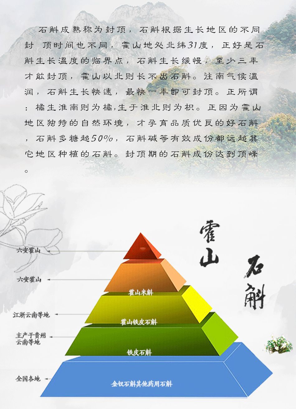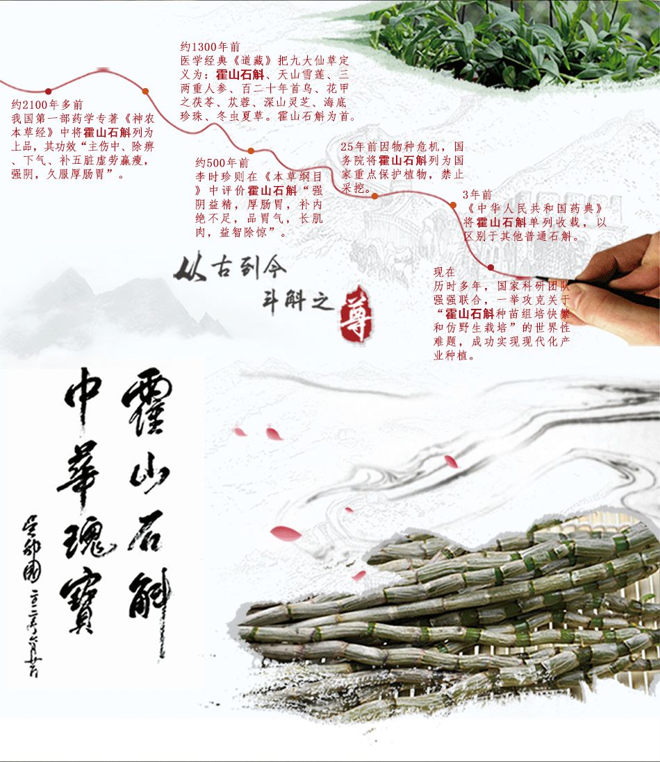 霍山石斛历史上一直贵为皇室专用,皇帝们为了长生不老而用霍山石斛炼制长生丹。也成为新贵们争先到原产地抢购的养生保健佳品。产于安徽省霍山县的霍山石斛是石斛中的极品,但是霍山石斛生长环境苛刻,产量稀少,市面上只有少数像福临门铁皮石斛这样的老品牌能买到真正的霍山石斛。霍山石斛历史上被誉为“中华九大仙草之首”,“救命仙草”现代人尊称为“中华仙草之[较]”“健康软黄金”,用霍山石斛加工的饮品——枫斗,被称为“枫斗之王”。